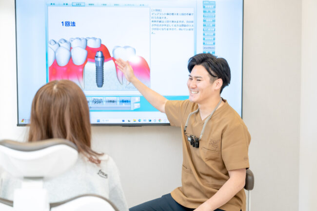 当院では、インプラント認定医による精密で安全性の高い治療を提供しています。はじめての方でも安心して治療を受けていただけるよう、カウンセリング・診断・アフターケアまで一貫してサポートいたします。